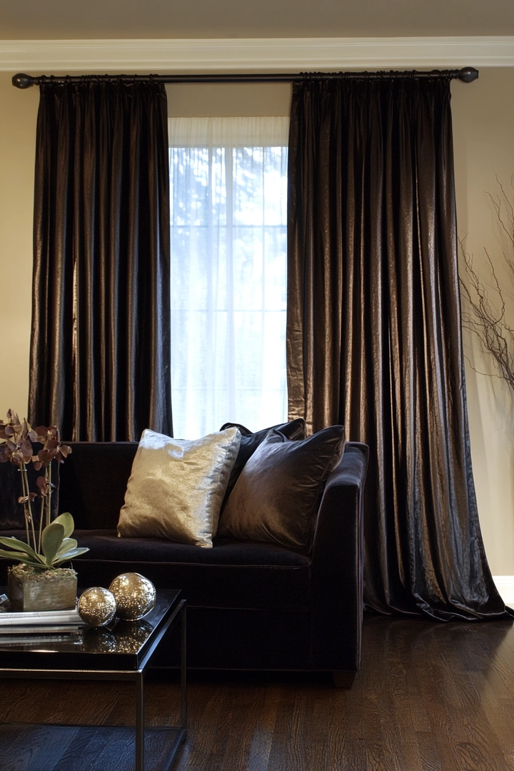 11. Luxurious Layers: Dark Drapes with an Elegant Touch